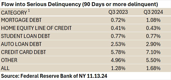 Auto loan defaults are also approaching new record levels last seen in 2008.